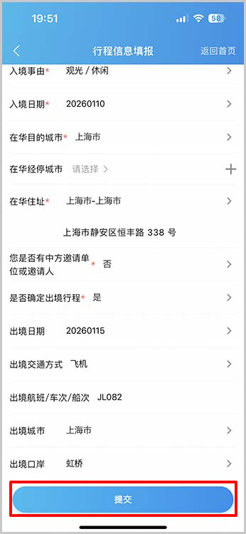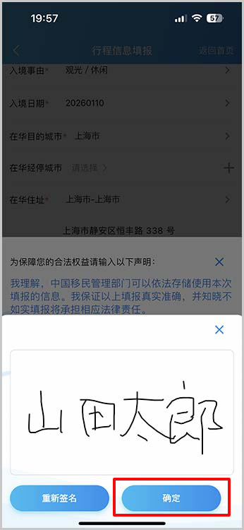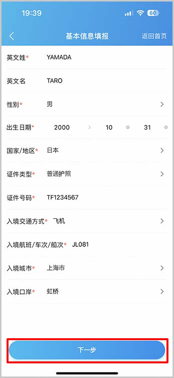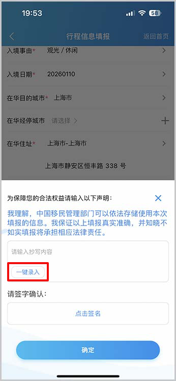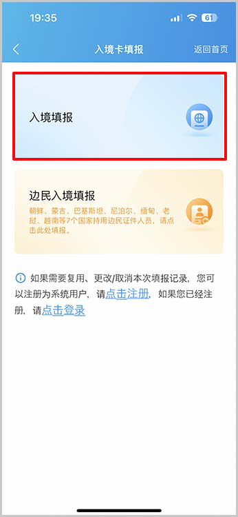 「入境填报」をタップします