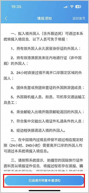 確認して問題なければ、「已阅读并同意申请须知」をタップします
