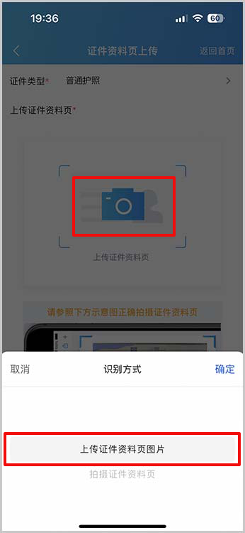 三、システムの指示に従い、国際旅行証明書(パスポート)の個人情報ページを撮影して証明書情報を入力してください。