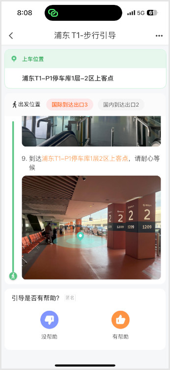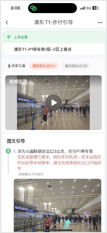 広い空港でどこから滴滴出行に乗れるのか、滴滴出行アプリが教えてくれます。