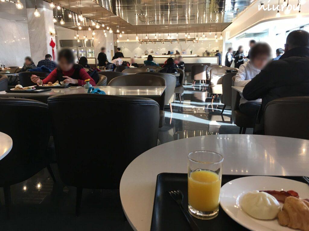 提携ラウンジは、中国東方航空のラウンジで、席数も十分あり、料理の種類も豊富です。