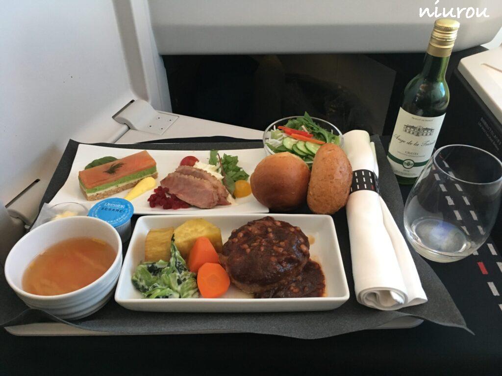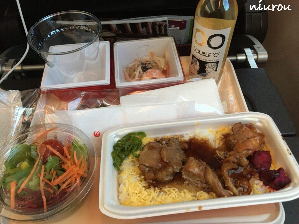 こちらは、エコノミーの機内食です。このチキンは、味がとても美味しかったです。