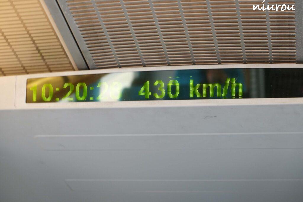 最高速度は、430km/hですが、時間帯によっては、300km/hに抑えて運行しています。