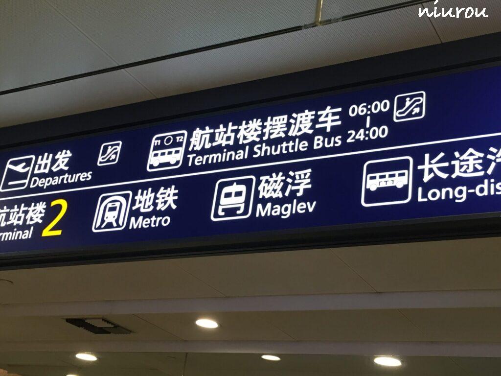 浦東空港に着いたら、この磁浮 Maglevという案内表示を見つけて案内表示にしたがって歩きましょう。