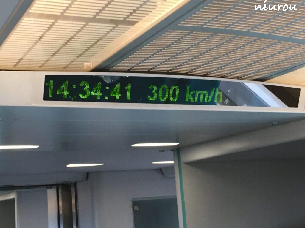 マグレブの切符売り場には、各時間帯の最高速度が表示されてますので、どうしても430km/hを体験したければ、空港のケンタッキーとかレストランで少し時間を潰して待ちましょう。