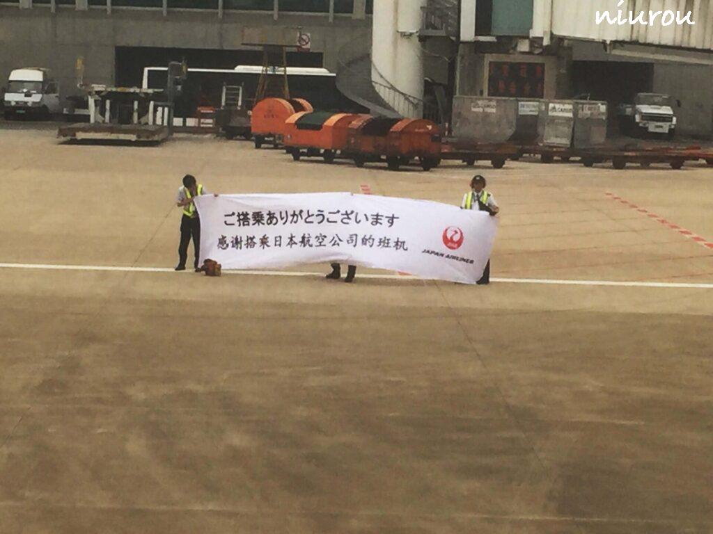 浦東空港で見送ってくれたJALの地上スタッフです。