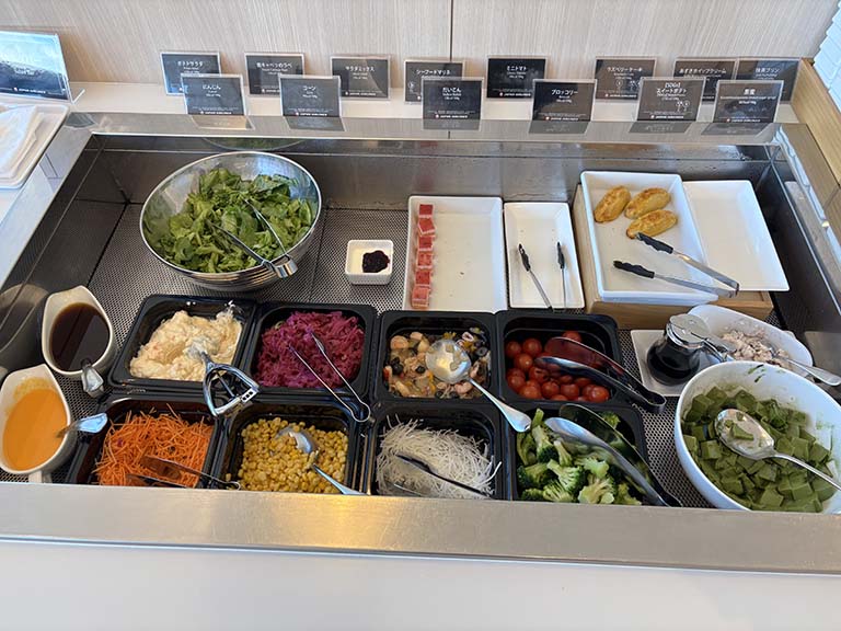 早朝のサクララウンジは、混雑していて、料理の写真など撮ることもままならないのですが、お昼の時間帯は、ガラガラで料理の写真を撮ることができました。