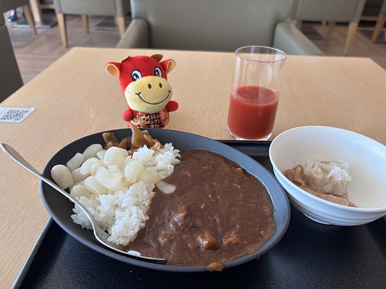 この時は、JAL特製ビーフカレー、100gのライス、しゅうまい、トマトジュースをいただきました。