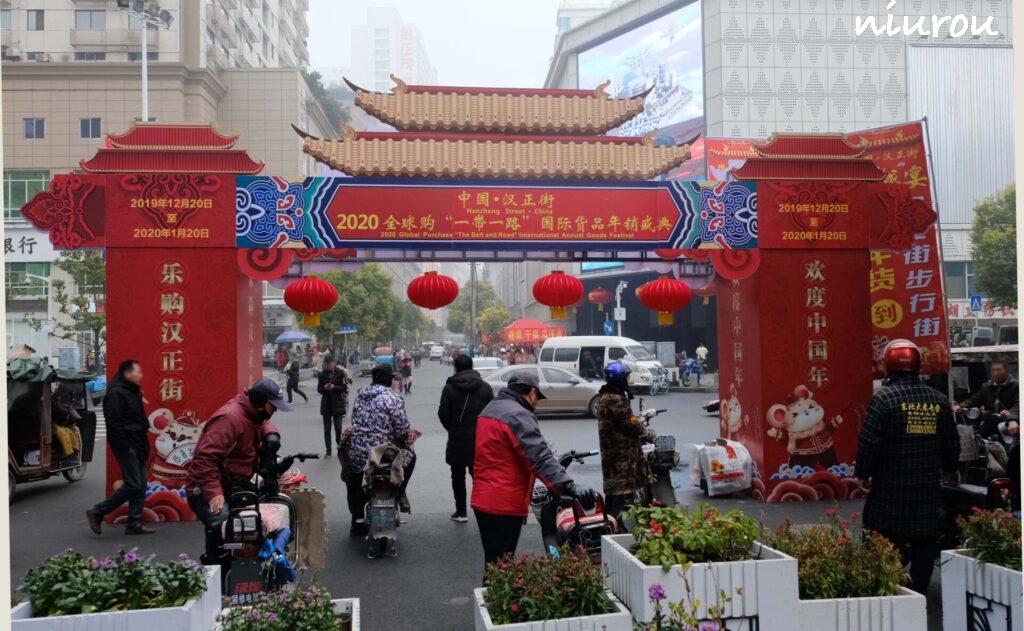 漢正街の入り口です。すでに春節の飾り付けがされていました。