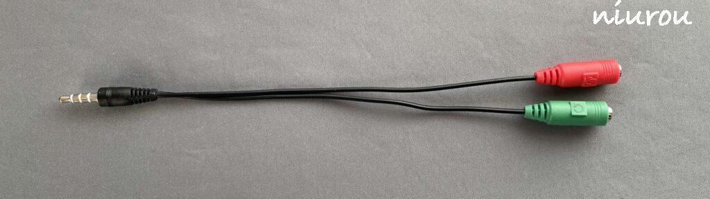 もし、コンデンサータイプのピンマイクとイヤホンを別々に用意して使いたい場合は、以下のような「ステレオミニ 2系統 → 4極オーディオ入力 マイク入力混合ケーブル」を使うことをお勧めします。